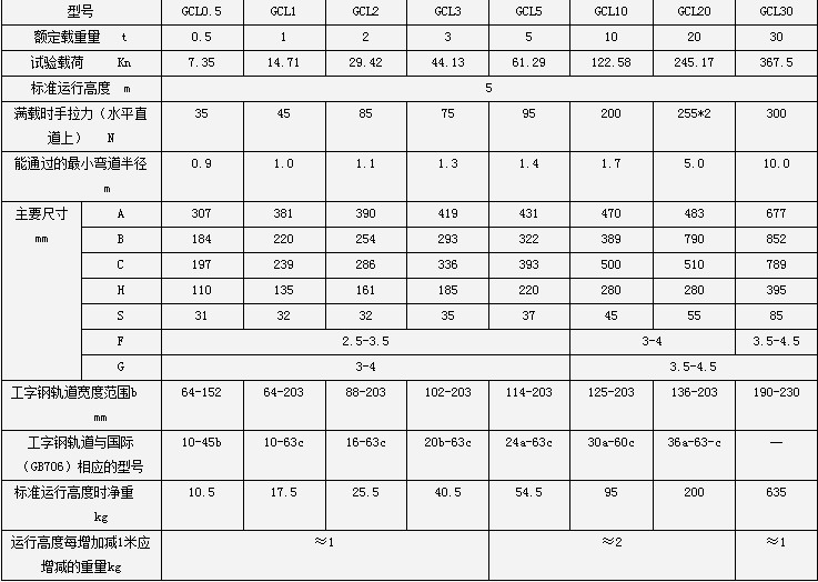 手鏈單軌小車GCL型0.5T-30T介紹: 手鏈單軌小車又叫手拉葫蘆跑車,廣泛用于無電源的工作環(huán)境下,汽車發(fā)動機的安裝就位和貨物的搬運。