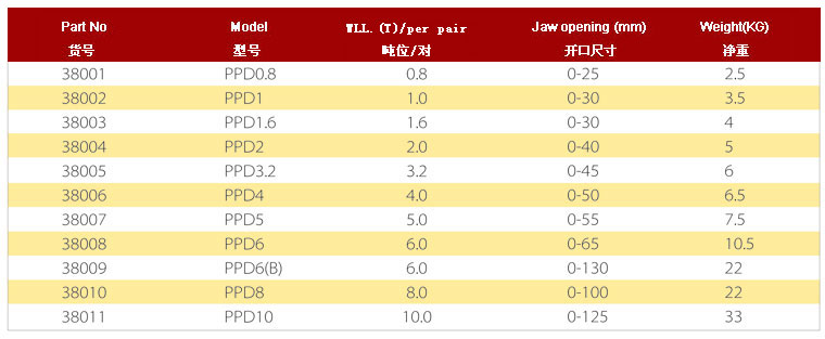 PPD橫吊鋼板鉗 荷載范圍:0.8-10T.
