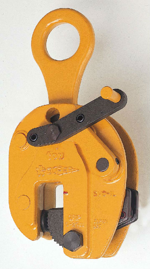 日本世霸SVC-L型立吊夾具帶有彈簧型鎖結構,無繩索無負荷時,夾口也在緊閉;帶有遠隔操作桿,在高處也能裝卸吊上荷重,鋏背則比例地增強鋏力耐久。