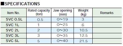 日本世霸SVC-L型立吊夾具技術參數(shù):