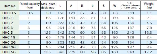 日本世霸水平HHC橫吊具技術(shù)參數(shù):