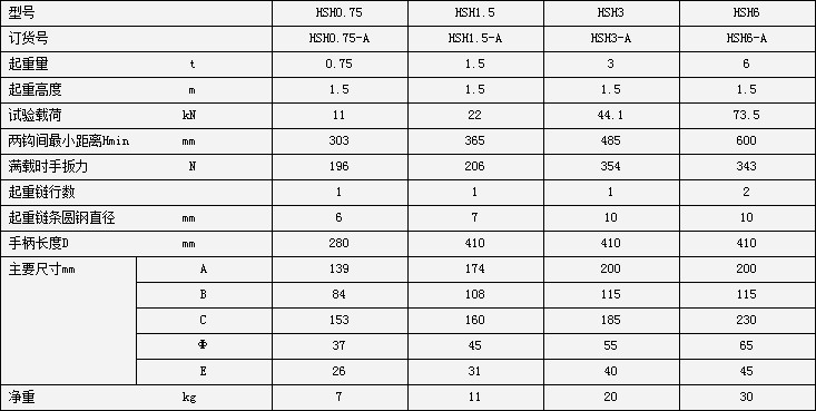 手扳葫蘆HSH型0.75T-6T A類采用合金鋼材質(zhì)制成的一種多用途的起重機(jī)械設(shè)備,具有牽引、起重、禁錮的作用,廣泛用于電力行業(yè)、建筑行業(yè)、運(yùn)輸行業(yè)、礦山行業(yè)等。
