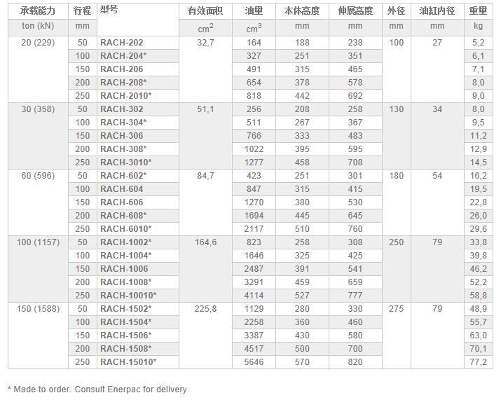 美國恩派克RACH-系列雙作用鋁制油缸技術(shù)參數(shù):